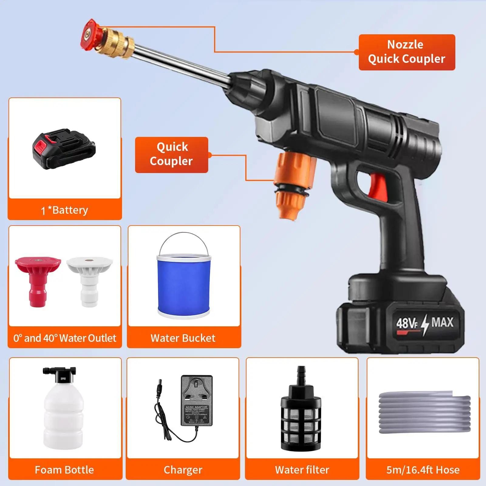 1.High-Pressure Water Force: Tackle outdoor cleaning effortlessly using high-pressure water, a flexible long-drain hose, and multi-angle functionality, ensuring instant pressure release when needed